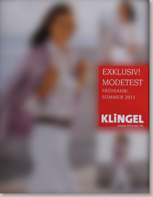 ... der neue Frühjahr-Sommer-Katalog von Klingel. Obwohl ... es ist ja kein Katalog ... steht ja "Modetest" drauf. Aber nur deswegen, weil Klingel genau weiß, wie blöd das den Menschen vorkommt, wenn sie jetzt schon den Sommerkatalog kriegen ... also wird das einfach umbenannt ... obwohl das innen nichts anderes als ein Katalog ist.