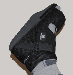 sieht ein Vorderfußentlastungsschuh aus (ich hab bis gestern nicht gewusst, dass es sowas gibt).- selbst wenn ich am Sonntag "ist nur verstaucht" gesagt hätte, wäre ich spätestens heute beim Arzt gewesen. Denn so hab ich zwar kaum Schmerzen, aber normales Laufen ging gar nicht (bei einer Verstauchung wäre es nach zwei Tagen anders gewesen) und da hätte ich doch mal nachsehen lassen.