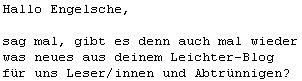 Engelbert 17.11.2006, 11.11| (22/1) Kommentare (RSS) | PL | einsortiert in: alles alltägliches