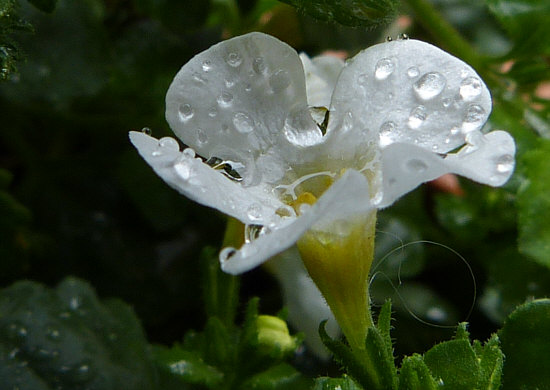 Ist schon der Wahnsinn, wie groß kleine Dinge durch Makrofotografie werden. Und da ist ein kleiner Flussel (Fussel, Fluse), den man mit bloßem Auge gar nicht sieht. Und die Blüte steht voller Wasser.