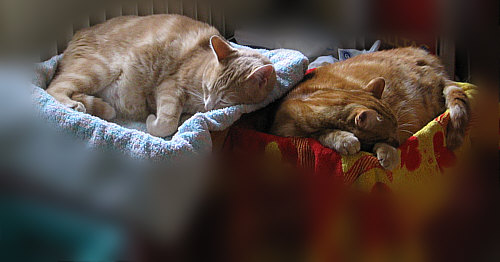 Nur ... heute Morgen legte sich Mogli dort hinein. Ich hätte mir da keine weiteren Gedanken gemacht, mal liegt der eine, mal der andere drin. Beate aber, fürsorglichste aller Katzenmütter, meinte, dass das doch nicht geht, wenn Mogli dort liegt, wo Mickey normalerweise liegt und was denn nun Mickey macht, wenn er dort auch liegen will.