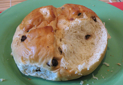 Man legt sich das schöne frische weiche Schokohefebrötchen auf den Teller ... plant, das gleich zu essen ... gleich heißt nicht sofort ... und macht noch dies und jenes, fährt vielleicht spontan mit dem Mann mit, weil der spontan entschieden hat, zur Gründeponie fahren und man bei dieser Fahrt am Supermarkt vorbeikommt ... kann man zwei Fliegen mit einer Klappe schlagen ... und wenn man nach Hause kommt, sieht das, was auf dem Teller liegt, so aus: