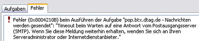 ... schieben. Das wars dann auch schon, nun bricht Outlook erst ab, wenn eine Mail länger als 10 Minuten braucht. Okay, t-online war nicht die Ursache, sondern Outlook selbst und so gesehen ist auch dessen Fehlermeldung Blödsinn.