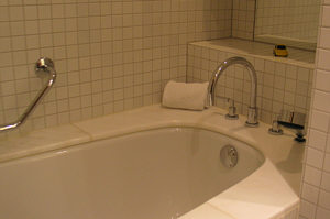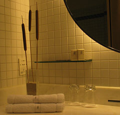Das Wasser läuft schnell und warm ... in der Wanne liegt es sich saugut. Dezente Dekoration ...