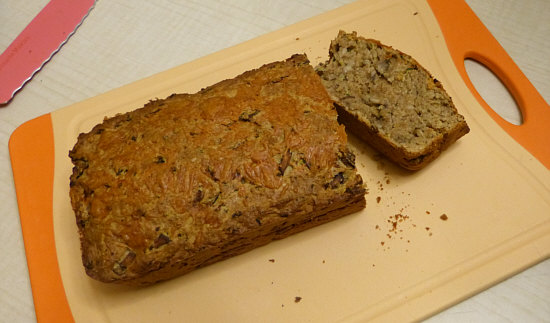 ... ist kein Hackbraten ... sondern ein Brot. Kein normales Brot, ein Zucchini-Pilz-Brot. Beate hat doch glatt das normale Mehl durch Vollkornmehl ersetzt, weil sie grad kein anderes hatte ... Mut hat die Frau ... und genauso schmeckt das Brot auch: wertig ... vollwertig. Dochdoch, es schmeckt gut, richtig gut ... nur a bisserl trocken ... aber es macht satt und ist mal etwas anderes.