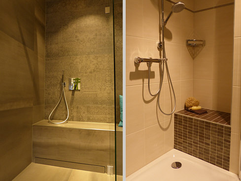 Tendenz 1: gemauerter Sitzplatz in der Dusche, Klapp-Schwing-Tür