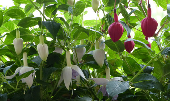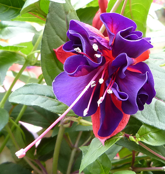 Weiß/violett, rot/rosa und rot/violett sind die Blüten ... hier eine von unten:
