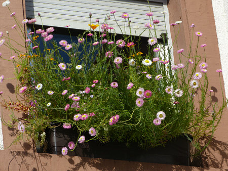 Das wars aber noch nicht ... ich stehe gerade auf der Treppe, bücke mich, um mit dem Handfeger zu kehren ... da fällt mir Beates Blumenkasten aus ein Meter Höhe auf Rücken und Kopf. Das ist nicht gelogen und kein schlechter Scherz, sondern wirklich so passiert.