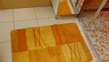 die Rutschgefahr ... die war bis gestern enorm ... die weißen Fliesen sind sauglatt, wenn man mit nassen Füssen läuft ... doch gestern habe ich einen Badteppich gekauft ... ein Schnäppchen für 10 Euro.