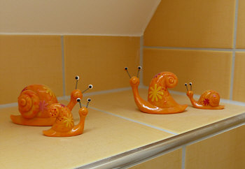 die Schnecken ... die wollten unbedingt mit ... ich hab die gesehen und mich verliebt. Nun begrüßen sie mich jedes Mal, wenn ich das Bad betrete und erinnern mich daran, dass in der Ruhe die Kraft liegt ;).