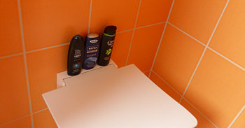 das Versteck ... hinterm hochgeklappten Sitz stehen die Duschgels ... hab leider aktuell keinerlei Ablage in der Dusche, was sich aber kurzfristig ändern wird.