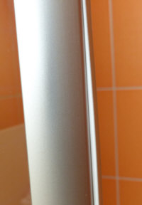 die Nanoteilchen ... das Glas der Dusche ist beschichtet ... eine Stunde nach dem Duschen sieht man nix mehr ... keine Tropfen, nur freie Sicht.