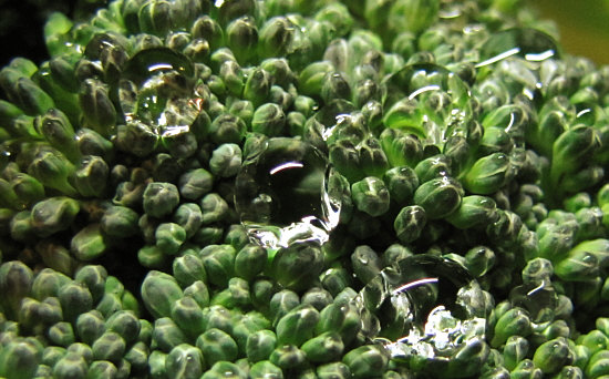 Broccoli nach dem Waschen, ganz nah gesehen.