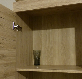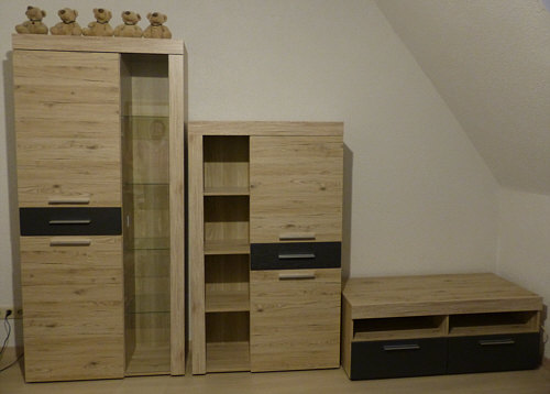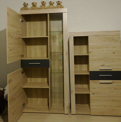 ... und links in dem großen Schrank (1,90 Meter hoch) sind gerade mal oben und unten je ein Zwischenboden.