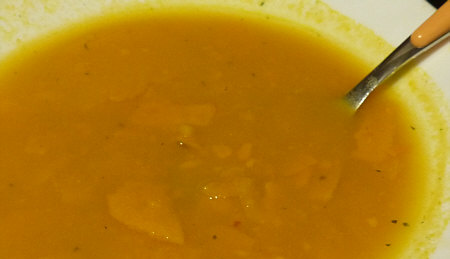 Man nehme zwei Süßkartoffeln, schneide sie in dünne Scheiben, koche sie in Brühe und würze mit Ingwer, Kurkuma, Pfeffer, Harissa und einem Spritzer Balsamico ... wenn die Kartoffeln gar sind, dann ein Teil der Suppe pürieren ... das wars auch schon ... schmeckt ganz fantastisch. Die Suppe darf nur nicht scharf sein, auch nicht direkt süß ... sondern leichte Süße mit leichter Schärfe.