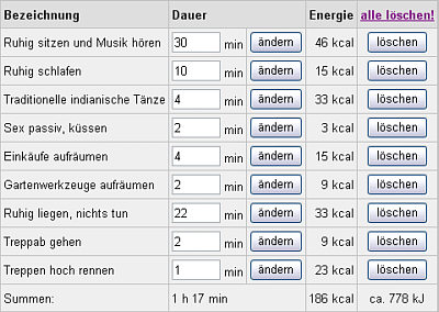... irgendwie nicht wirklich Kalorien verbraucht, müssen wir uns wohl ein Alternativprogramm überlegen. Wie wäre es denn mit ...