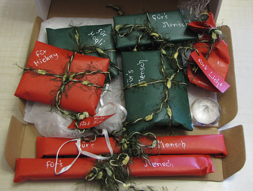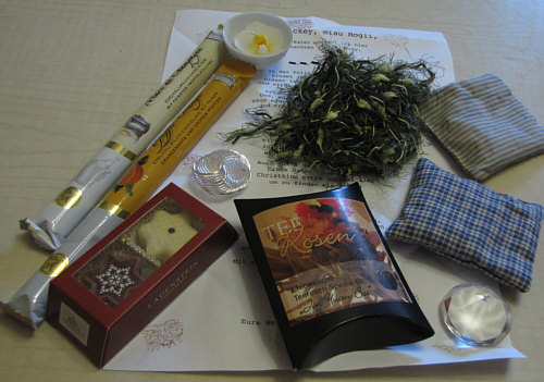 Liebevolle ausgewählte Kleinigkeiten ... hat uns sehr gefreut ... und wie sich das für ein Wichtelpaket gehört, haben wir immer noch keine Ahnung, wer uns alle da so nett beglückt hat. Bitte nie auflösen, das ist doch schön so.