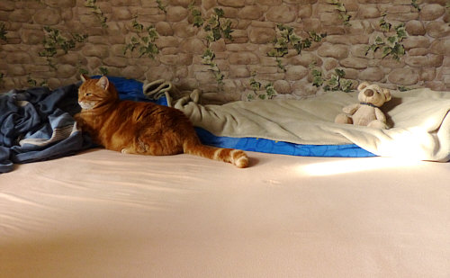 ... der allen Platz der Welt hätte, aber sich natürlich dort hin legen muss, wo mein Schlafanzug liegt.