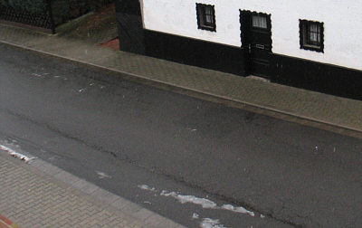 ... die Straße ist auf einmal schneebedeckt. Wind und Schnee = Scheeverwehung. Danke, unbekannter Autofahrer, für die Fürsorglichkeit :).