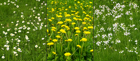 Bei unserem Spaziergang gestern Abend fiel das so richtig auf ... nach dem langen Winter gibts nun von Gänseblümchen, Löwenzahn und Wiesenschaumkraut besonders viele.
