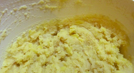 Für alle, die sich an der Optik stören: schöner kriegt ihrs auch nicht hin ... zumindest nicht in der Schüssel nach dem Stampfen ... denn so sieht halt ein solches Püree (in dem noch kleine Stückchen drin sind) aus.
