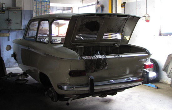 Es lohnte sich, nicht nur gerade aus weiterzulaufen, sondern auch mal zur Werkstatt im Hinterhof zu gehen. Der Chef war auch da und auf meine Frage, ob hier weitere NSU's seien, zeigte er mir sogar die Werkstatt und den aktuellen Pflegefall: