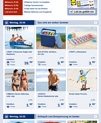 Ich finde das so doof ... alle anderen Artikel auf dem kleinen Bild gibts auch in der Filiale ... für mich ist das klar, wenn ich vom Discounter einen Newsletter "die aktuellen Angebote für Montag" kriege, dann kann ich diese Dinge auch im Geschäft kaufen. Der Weg war also umsonst und es gibt einen Minuspunkt für den Ärger, den ich grad spüre. Ich nenn das Verarsche, aber Lidl würde das "bitte lesen sie auch das Kleingedruckte" nennen.