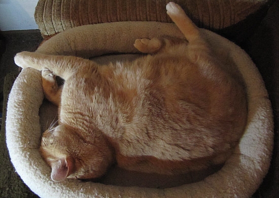... quetscht sich Mogli ins Körbchen, wenn er schläft.