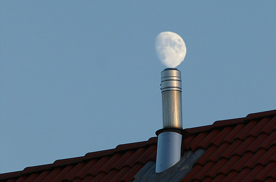 Wenn der Mond des Abends in Bruchmühlbach aufgeht, dann kommt er jedes Mal aus einem anderen Schornstein ... ich konnte heute Abend zufällig Zeuge einer solchen Geburt sein ... bei uns im Ort vor dem Supermarkt fotografiert ... das Bild ist nicht bearbeitet.