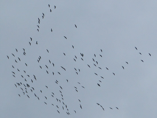 Gerade eben fotografiert ... das ist nun schon der vierte Kranichzug seit gestern, der über uns fliegt ... für mich sind das Vorboten des Winters ... und so kalt ist es auch geworden.