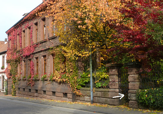 Durch dieses Tor fotografiert in Richtung der Treppe dahinter. Während ich noch die umrahmt bewachsenen Fenster weiter links fotografierte, rief Beate vom Tor aus "guck mal da, ob das nicht ein Fotomotiv wäre" ... und ich kam, guckte und stimmte zu. Bestimmt hätte ich das Motiv auch selbst entdeckt, aber Beate war schneller ;).