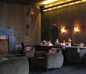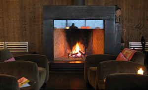 Urig gemütlich plüschsesselig. Wir saßen aber nicht weich, sondern lieber auf den harten Holzbänken ... in diesen Sesseln kannste ja nix essen ;)). Doch zuerst hat uns mal der Schlag getroffen ... eine Affenhitze war in dem Laden, der Kamin machts möglich: