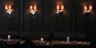 Kann man aber verstehen, denn das Café Edelweiss dient auch als Aufwärmstube für die Eisläufer. Und so vertilgten wir im Kerzenschein unter Herzenschein ...