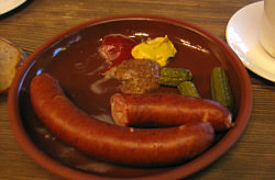 Ok, meine Würstl waren zu fett, was man ihnen ansieht. Aber in der Not isst man auch sowas bzw. der Geschmack war ganz in Ordnung. Beates Apfelstrudel soll auch gut gewesen sein, ich mache ja einen Bogen um Rosinen ;).