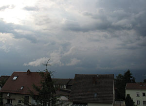 Es folgten 15 Minuten Sturm ... aber kein Regen. Der fiel erst in Kaiserslautern, 25km entfernt. Und wie er fiel ... die Kaiserslauterer Innenstadt stand 50 Zentimeter hoch unter Wasser, Feuerwehren waren im Dauereinsatz.