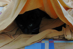 Blacky liebt es fast suchtartig, sich in einen Pullover oder ein T-Shirt von mir zu legen. Am besten in ein noch nicht gewaschenes mit leichtem Schweissgeruchambiente. Da ist er fast high. Also passiert es öfter, dass ich seine Notlage erkenne und mich umziehe ;)).