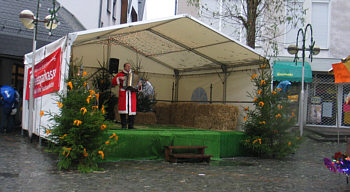 Weihnachtsmarkt Hütschenhausen: Regen, ungemütlich. Aber: Zimtwaffeln, von Hausfrau gebacken. Und Bürgerhaus, geheizt, mit langen Kaffeetafeln, großer Auswahl an selbstgebackenen Kuchen, gutem Kaffee, netter Bedienung und sehr günstigen Preis. Der Testsieger also.
