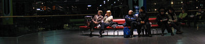 Wie bestellt und Auto nicht abgeholt saßen die Menschen auf den roten Sitzreihen: