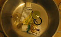 ... ein paar alte Waschlappenaufhänger, zwei Tube mit Restsalbe, ein Dichtungsring und ... ein Zahnstocher (was hatte der dort zu suchen) sind entsorgt.