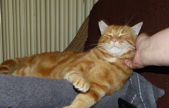 Zum heutigen Weltkatzentag gibts ein ganz aktuelles Bild, gerade eben fotografiert ... der König der kleinen Löwen und sein treuer Diener, der mit der einen Hand seiner Hoheit huldigt und mit der anderen Hand fotografiert ;).