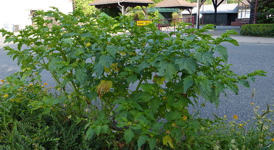 Sieht ähnlich aus wie ne Lampionpflanze, ist es aber nicht (meiner Meinung nach, weil sie ca. 1 Meter hoch ist und Physalis doch eigentlich kleiner sind ?).