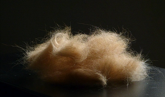 Und hier sieht man den Farbunterschied zwischen Mickey und Mogli ... vorne Mickeys Wolle und hinten die von Mogli ... der hat zwar kürzeres, aber noch dichteres Fell: