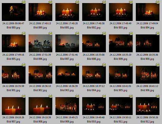 Es gibt also insgesamt über 10 Bilder der damals auf meinem Sideboard stehenden Kerzen. Die Häuser standen daneben.