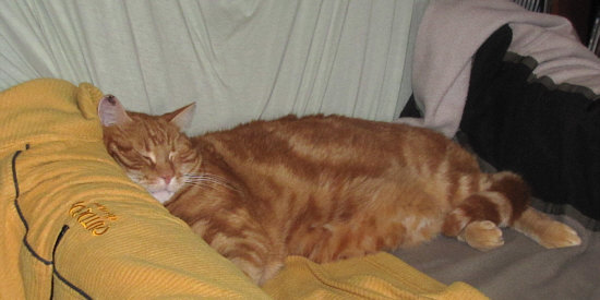 Manchmal legt mir das Herrchen sogar extra einen oder zwei Pullover, die er getragen hat, auf den Sessel ... das riecht dann so schön nach ihm und da kann man wunderbar schlafen.