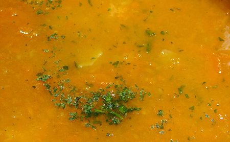 3 große Möhren und eine Kartoffel in Brühe kochen, abschmecken, einen Teil der Suppe pürieren, Peterilie drauf, fertig.