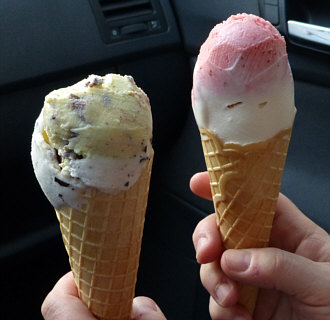 Hurra, heute gabs das erste Eis des Jahres ... 14 Grad wars draußen, ab und zu Sonne, schöner Spaziergang und dann im Auto das Eis. Morgen ist ja Regen angesagt und dann wirds wieder Winter.
