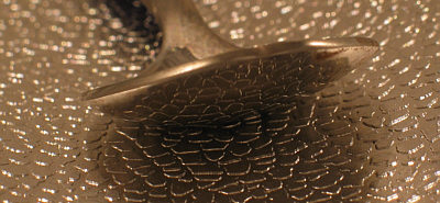 Ich hab dann aber das gemacht, was ich oft mache, mich zurückgezogen. Und mein eigenes Ding gesucht. Hatte nur leider nix dabei an Fotografiergegenständen. Gesucht ... gefunden ... einen Reflektorschirm und einen Kaffelöffel. Während die anderen die Blitzanlage des Studio weiterhin quälten, habe ich mit Tischstativ ganz in Ruhe einen Löffel in die Schirminnenseite gelegt.