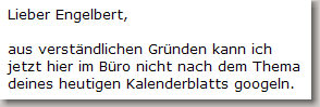 Engelbert 09.11.2005, 10.41| (7/0) Kommentare (RSS) | PL | einsortiert in: sonstiges