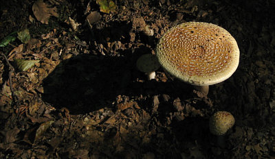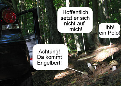 Der "da kommt Engelbert" lebt allerdings noch. Doch der große Angsthase und der ihh-Rufer wurden zu einem Pilzfachmann gebracht, um zu erfahren, ob das mein Mittagessen wird. Das Wort "Pantherpilz" ließ mich dann doch von diesem Plan abkommen.