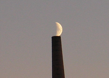 Er sucht sich nach getaner Arbeit einen schönen Fabrikschornstein aus und legt sich dort schlafen: